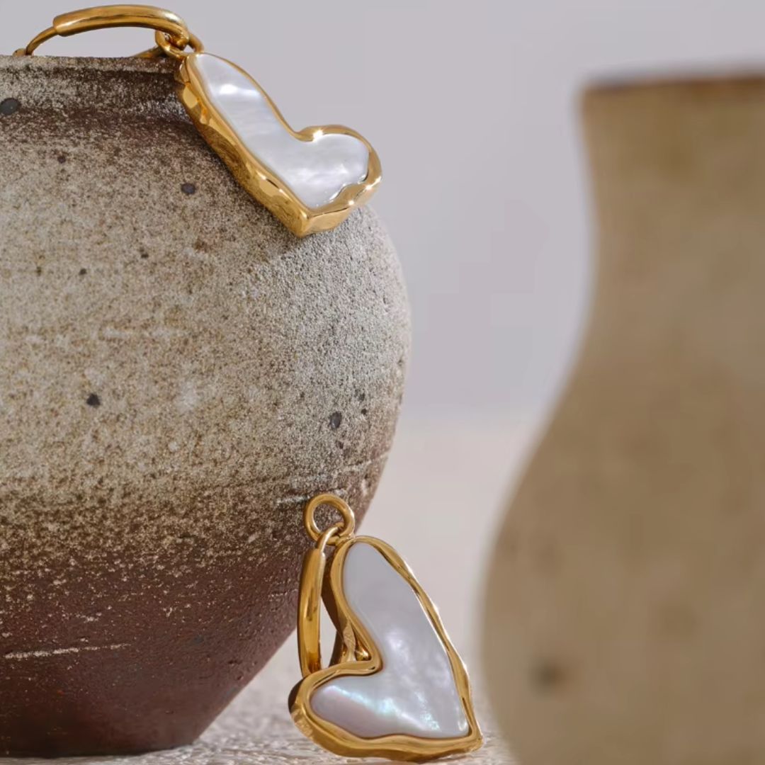 The Aurora Heart Huggie Premium Earrings blend delicate romance with modern luxury, featuring radiant gold huggies adorned with luminous pearl shell heart charms. Designed to gracefully sway with every movement, these earrings capture the essence of timeless elegance and effortless charm. Perfect for those who seek a sophisticated yet meaningful piece, these huggies are a testament to love, light, and refined beauty.