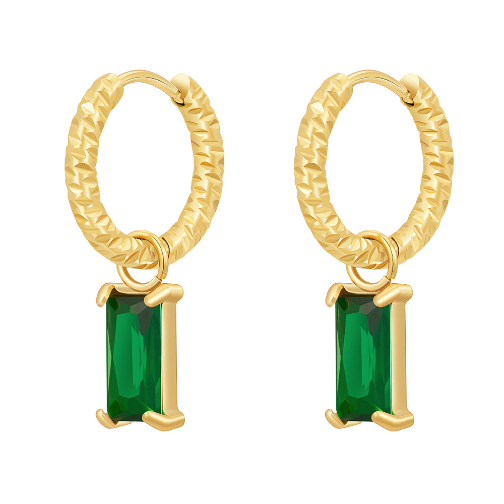 Emerald Drop Huggies Designer Premium Earrings - 18K Gold Plated