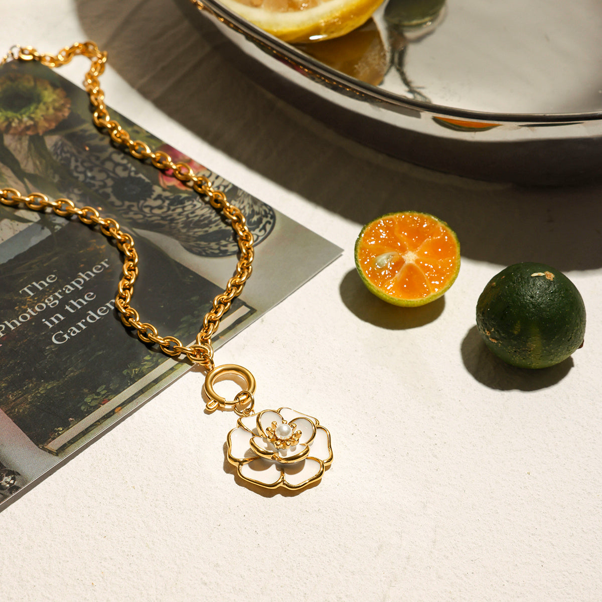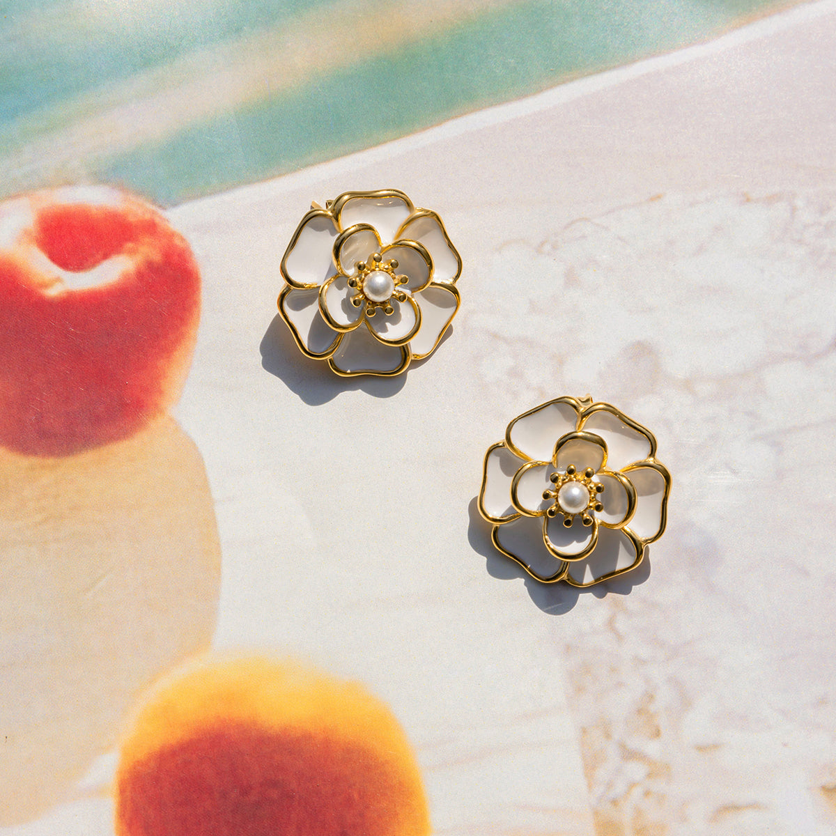 Crafted with intricate flower designs and a luminous finish, this necklace and earring duo brings charm and chic energy to every outfit. A timeless bloom with a fashion-forward edge. 🌼 #StyledInFloraline