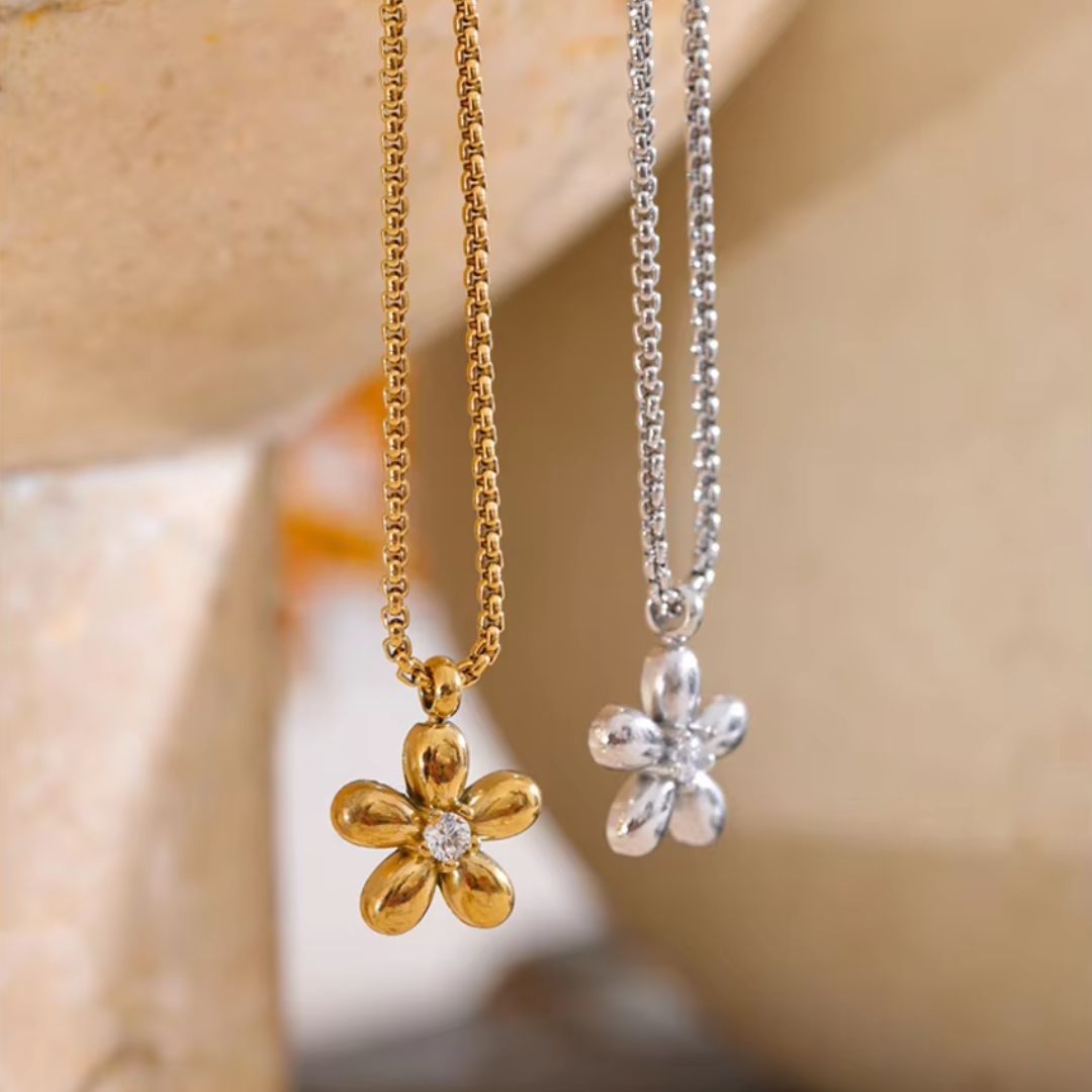 our Flower Premium Necklace is a timeless symbol of grace and beauty. Delicately crafted in gold, this enchanting floral pendant radiates elegance, making it the perfect piece to add a touch of nature-inspired charm to your everyday style.