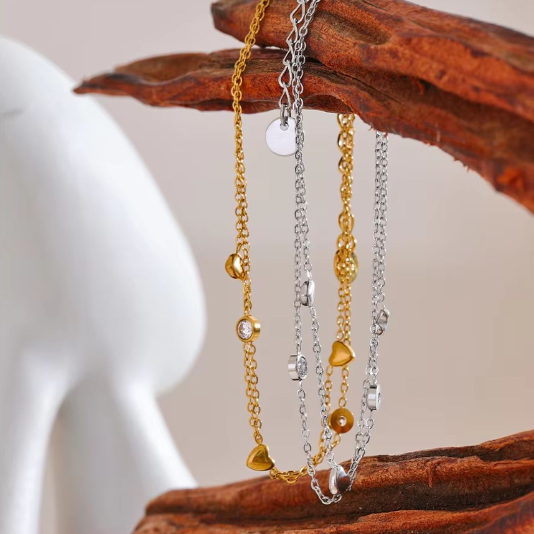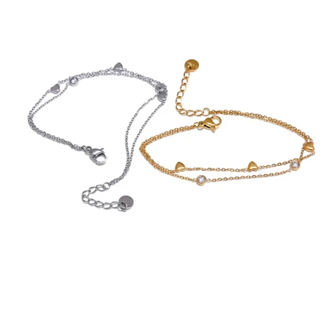 The Lovelace Heart Premium Bracelet is a poetic celebration of love and elegance. Featuring a layered gold chain design, it seamlessly intertwines sparkling zircon stones with a delicate heart charm, creating a look that is both modern and timeless. Whether worn alone for a subtle statement or layered for a touch of brilliance, this bracelet is the epitome of refined romance.