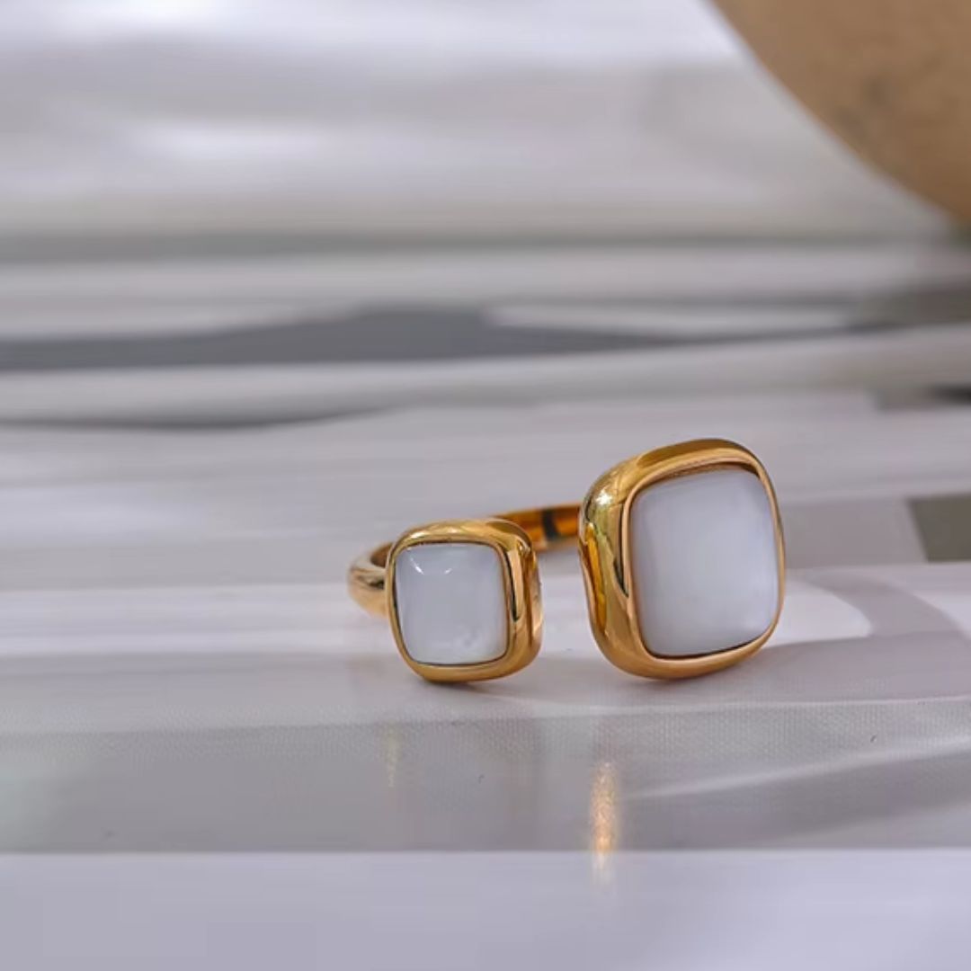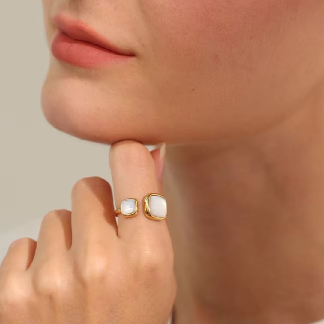 Mother of pearl Duo Premium Adjustable Ring - 18K Gold Plated