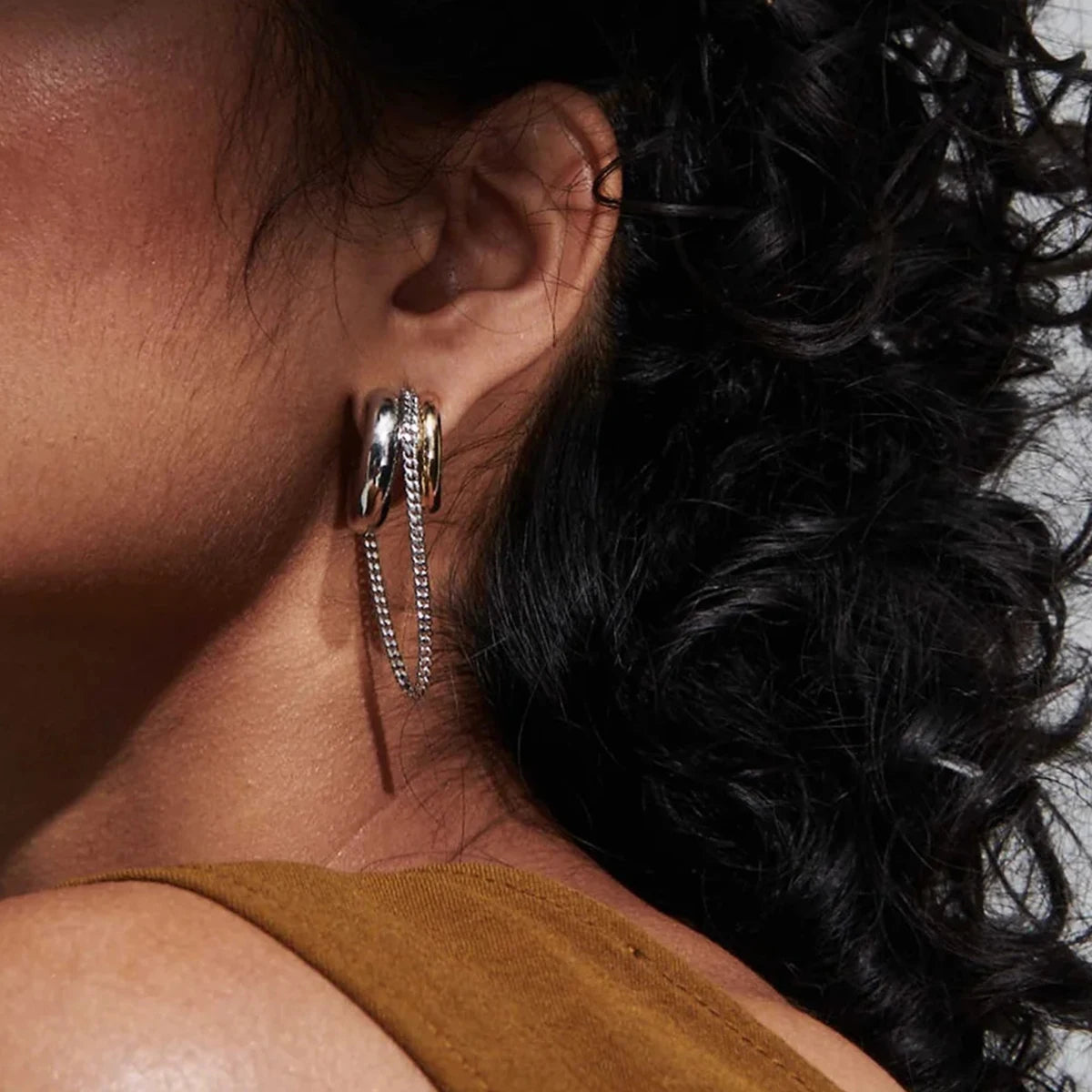Let your style flow with the Niva Chain Earrings — sleek, lightweight, and stunningly modern. The chain design brings movement, shine, and that subtle wow-factor that turns heads from across the room. Perfect for minimalists who love to make a statement. ✨🔗 #GLDNdrape