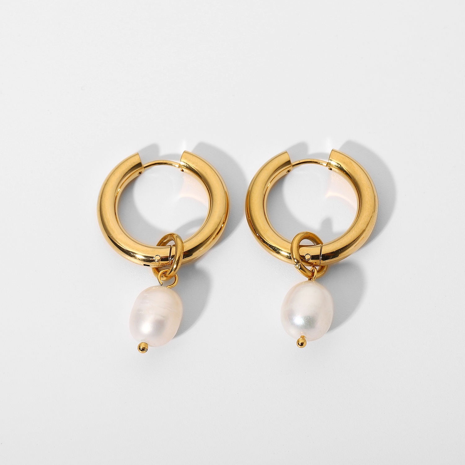 Pearl Hoop Premium Earrings - 18K Gold Plated
