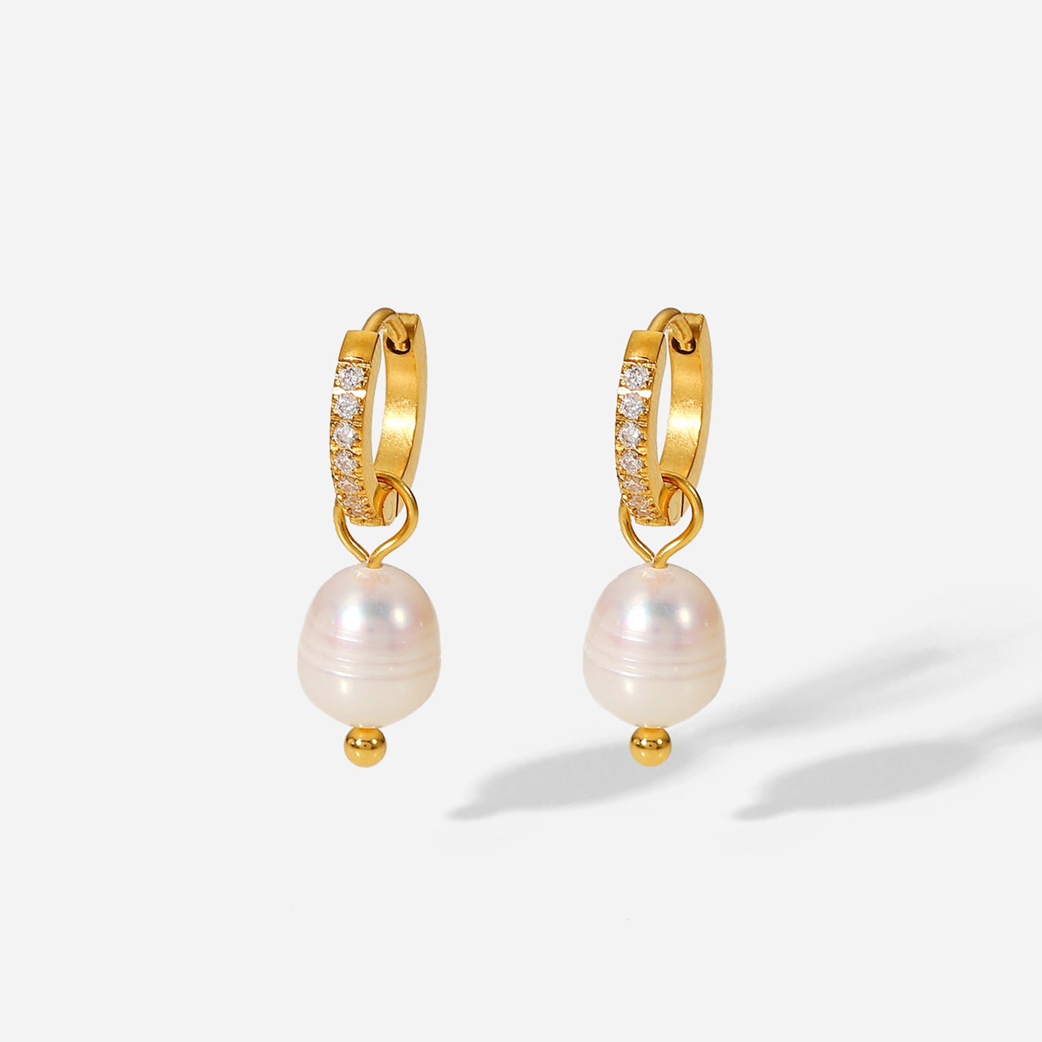 Small Pearl Zircon Hoop Premium Earrings - 18K Gold Plated