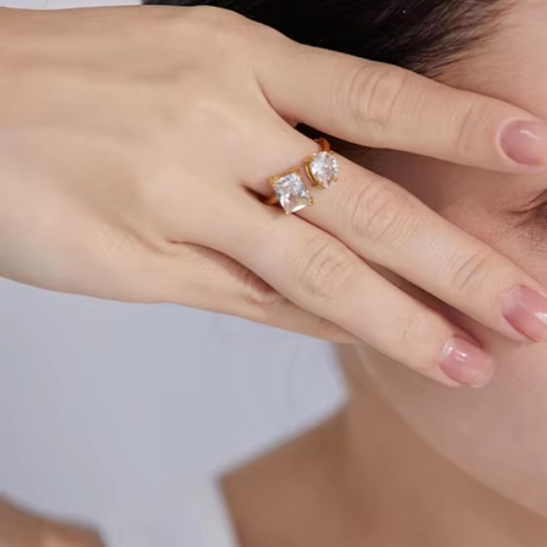 Elegant, meaningful, and made to shine — the Toi Moi Premium Adjustable Ring brings together two luminous stones in a perfect embrace. A golden symbol of love, unity, and effortless glamour. 💫💕 #GLDNbond
